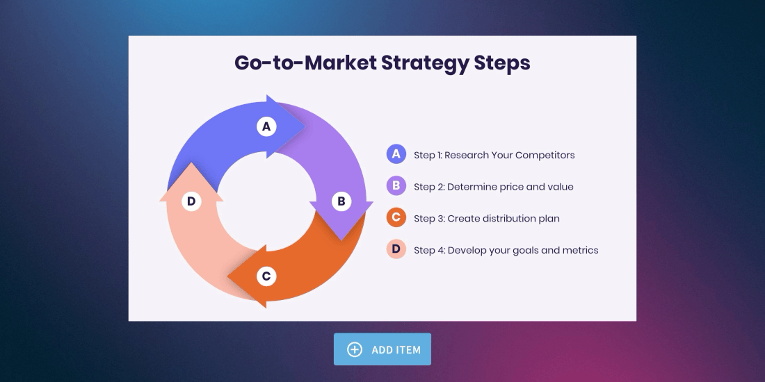 An infographic slide— like an arrow cycle— can fall flat if you rely simply on the diagram. To keep your audience engaged, you can take more creative control of the slide background. To add some dimension to the slide, you might try a colored or gradient background. Just make sure you keep legibility in mind so your slide doesn’t go from boring to cluttered.
