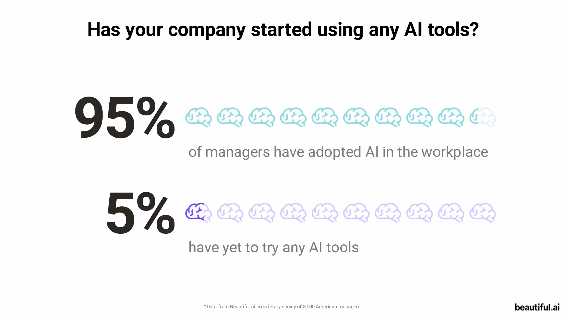 All data found within this report is derived from a survey by Beautiful.ai conducted online via survey platform Pollfish from February 20-23, 2023. In total, 3,000 adult Americans in management positions were surveyed. The respondents were found via Pollfish’s organizational role and age filtering features. This survey was conducted over a three-day span, and all respondents were asked to answer all questions as truthfully as possible and to the best of their knowledge and abilities.