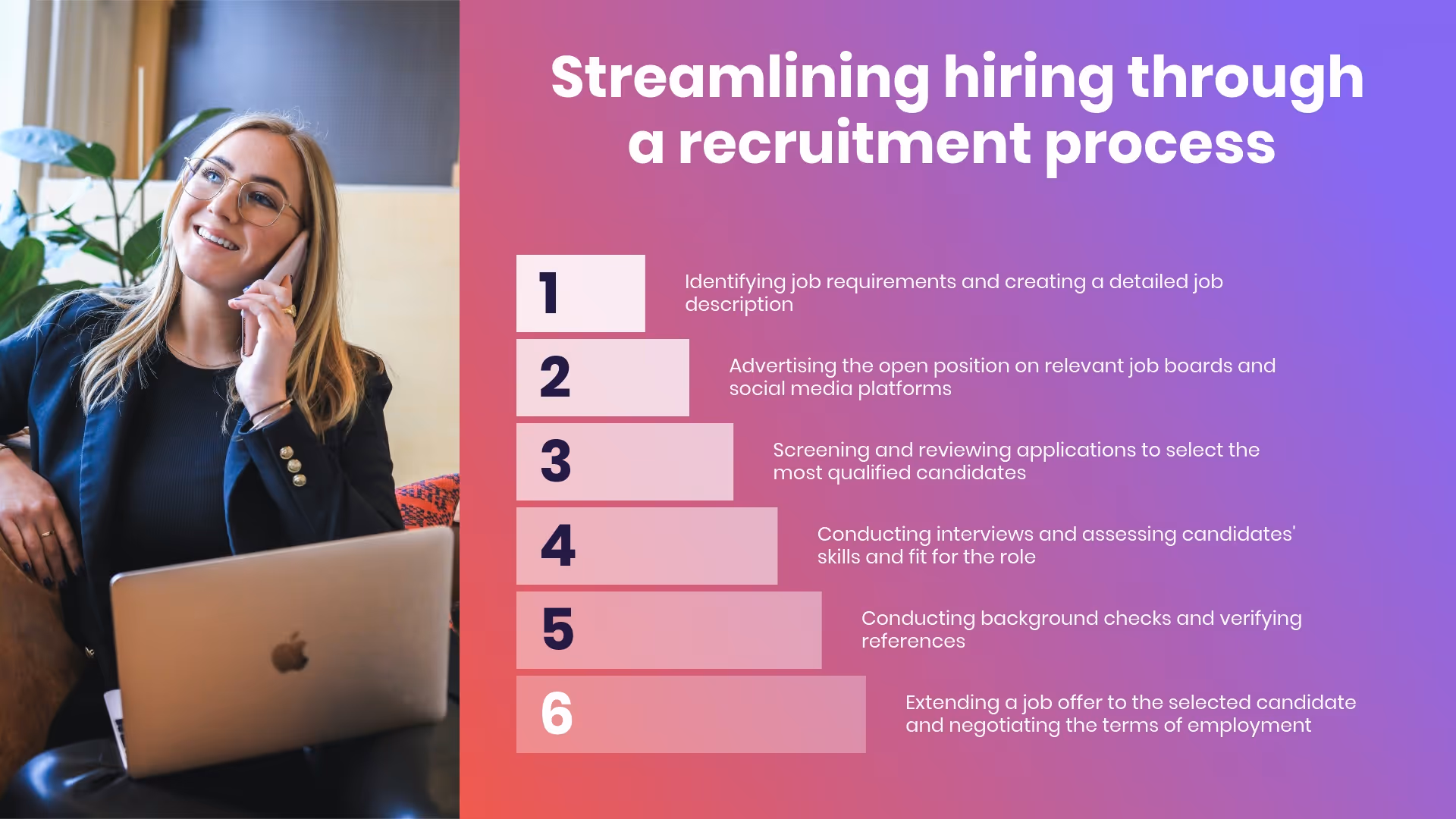 An agenda slide provides an overview of a meeting or presentation purpose and topics, and it lends structure to your planned discussion. An agenda slide is a great tool to help keep teams organized and make presentations, onboardings, and training more efficient.