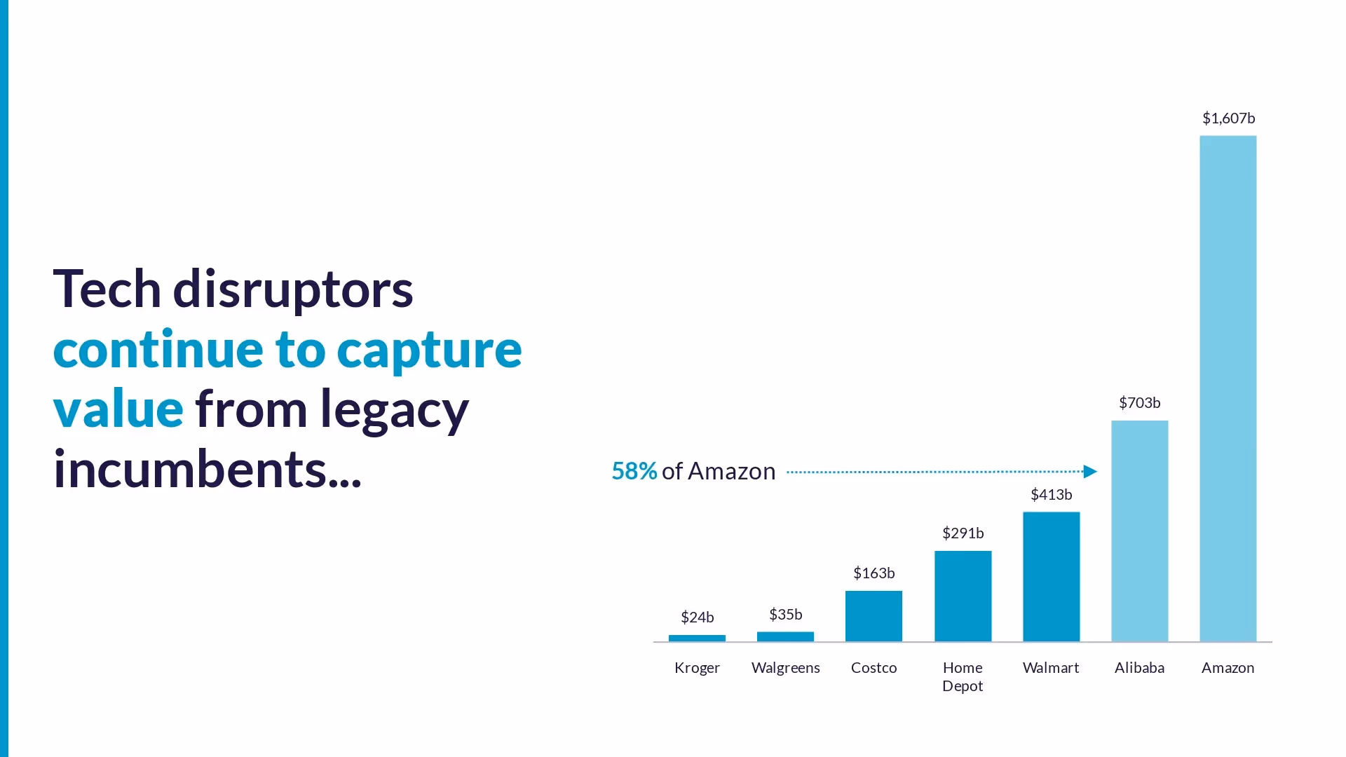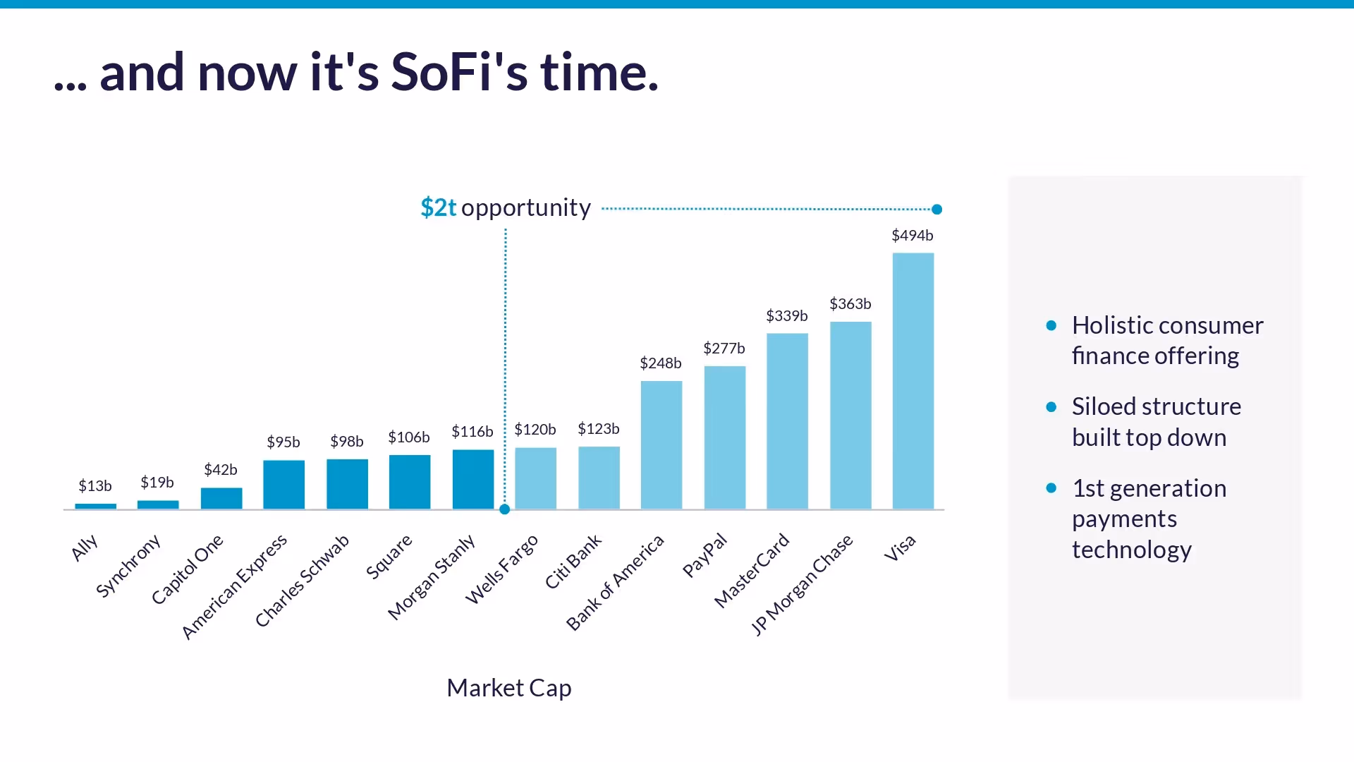 After they set the stage with the e-commerce companies, they transitioned to a slide with SoFi’s opportunities in the financial space. The original slide had a bold statement, “...and now it’s SoFi’s turn.” We kept the content, but revisualized the data on another column chart Smart Slide.