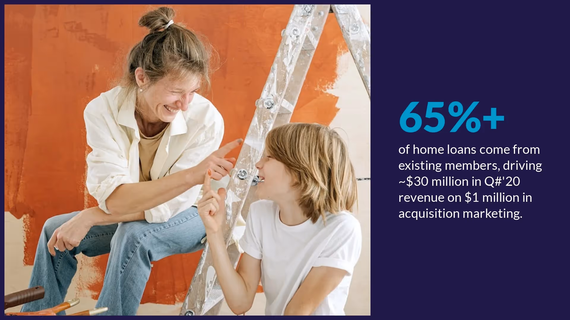 Your potential investors won’t be impressed unless you can quantify your success and prove member growth. We broke this up into two sections, to make it more digestible than what SoFi originally designed. The first slide being a simple headline to transition to the acquisition metrics.