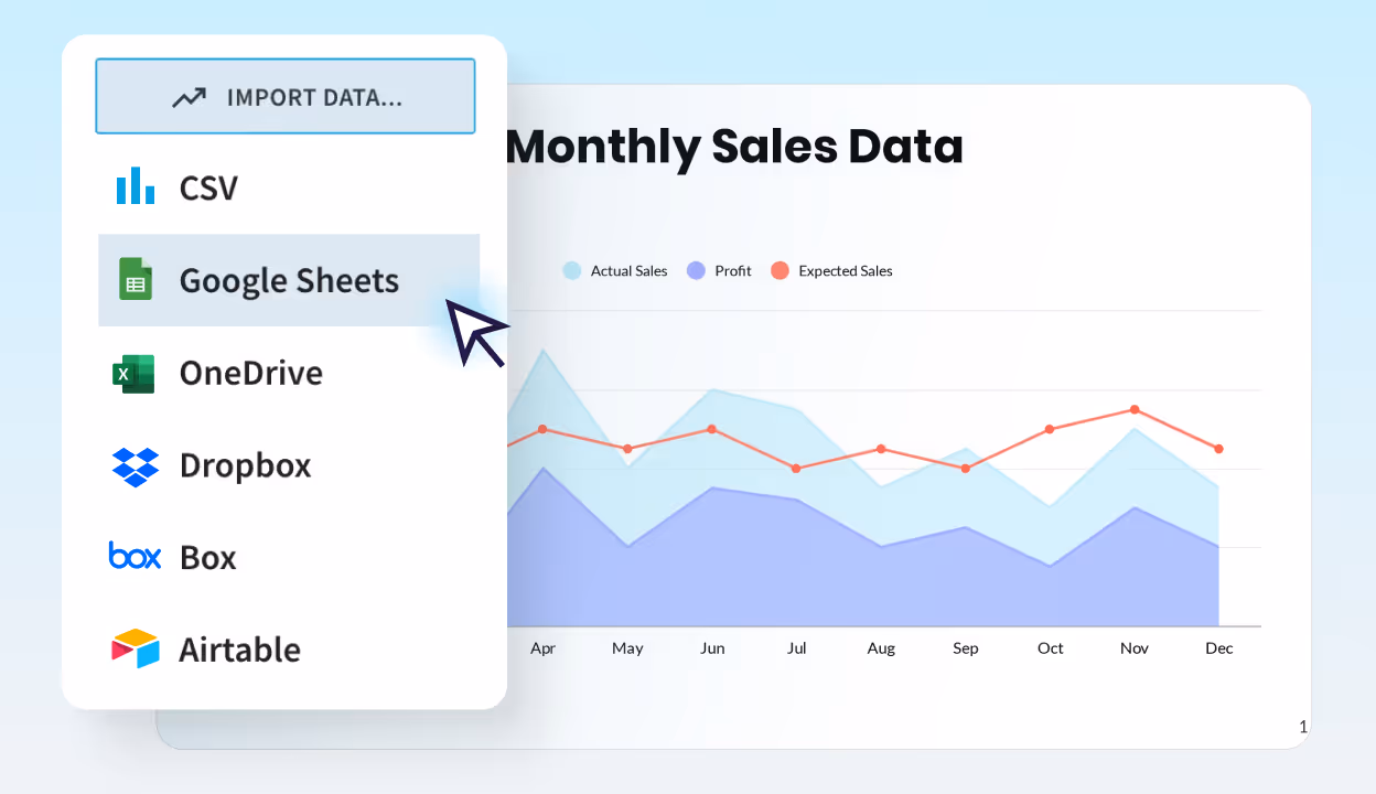 Turn data into clear, persuasive visuals. Smart Slides transform any spreadsheet into dynamic visual impact.